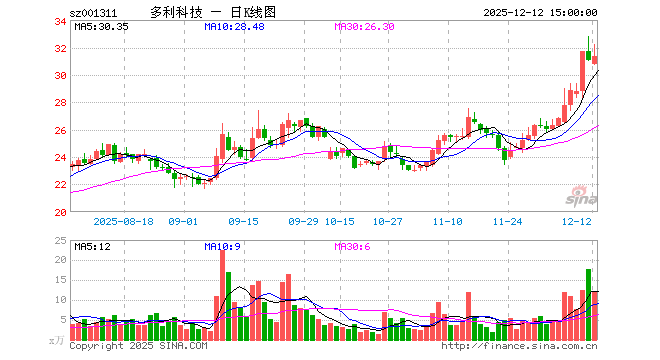 9月30日,多利科技开盘涨4.22%,报24.18元。