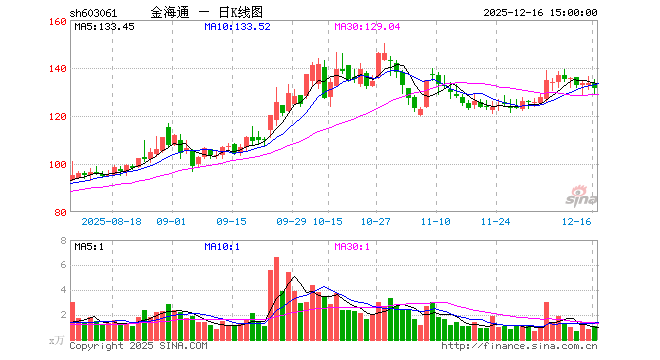 金海通收于62.120元,跌幅1.94%,成交金额0.5413亿元,换手率2.05%。