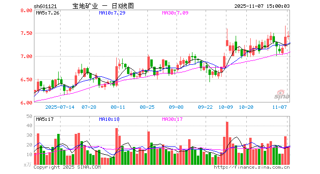 宝地矿业收于7.360元,涨幅3.37%,成交金额4.3834亿元,换手率22.33%。