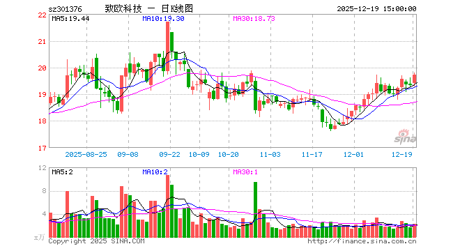致欧科技收于25.350元,跌幅8.75%,成交金额2.7087亿元,换手率28.59%。
