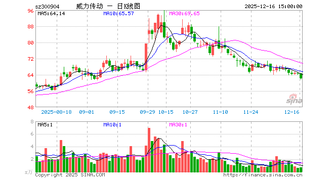 威力传动收于53.040元,跌幅1.41%,成交金额1.506亿元,换手率15.49%。