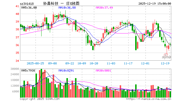 协昌科技收于30.440元,涨幅1.33%,成交金额0.4461亿元,换手率4.96%。