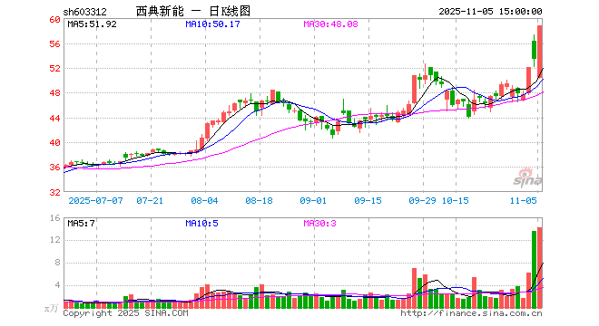 西典新能收于31.010元,涨幅4.06%,成交金额2.8413亿元,换手率27.57%。