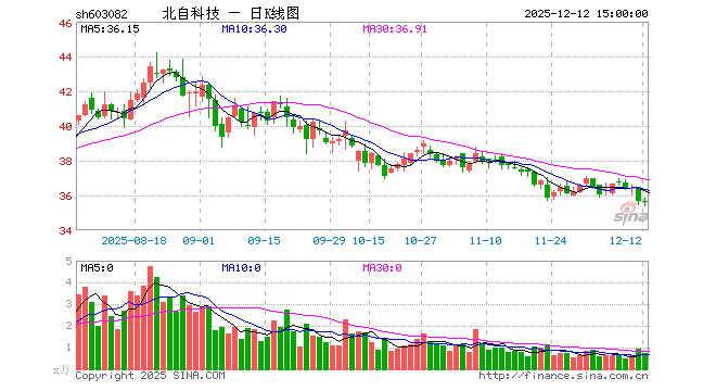 北自科技收于38.930元,涨幅4.99%,成交金额3.567亿元,换手率29.11%。