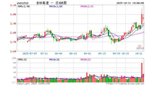 吉林高速收于2.750元,涨幅10%,成交金额1.852亿元,换手率3.6%。