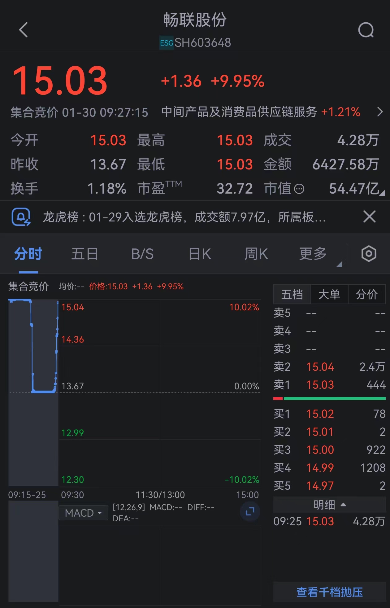 畅联股份竞价涨停走出6连板,此前上交所向畅联股份下发监管工作函,就公司近期股价波动情况明确监管要求。