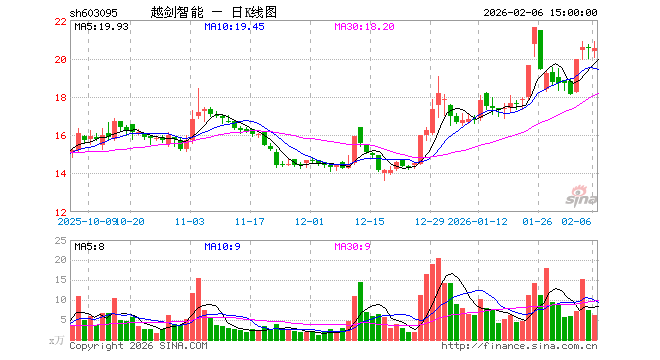 2月6日,越剑智能开盘跌6.88%,报10.02元。所属专用设备行业,开盘跌幅2.05%。