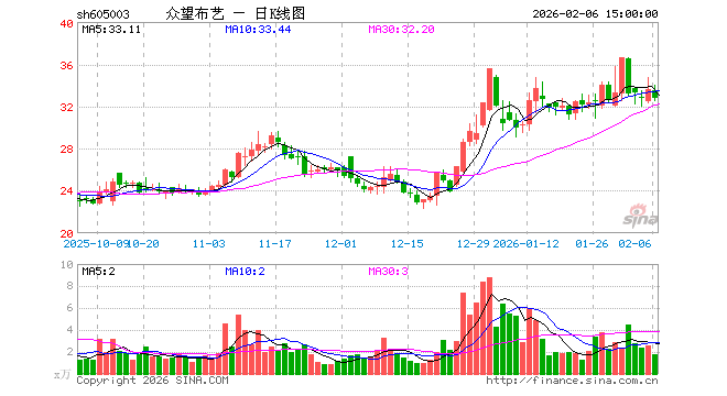 众望布艺收于17.040元,涨幅6.83%,成交金额0.5878亿元,换手率3.21%。