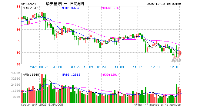 华安鑫创收于39.850元,涨幅2.44%,成交金额1.8077亿元,换手率8.6%。
