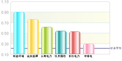 中绿电 每股收益在行业内名列第23 ,强于行业平均