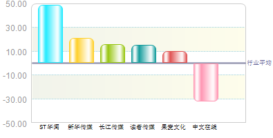 中文在线 1年涨跌幅在行业内名列第18 ,弱于行业平均,弱于上证指数