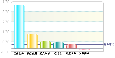 光明肉业 每股收益在行业内名列第8 ,弱于行业平均