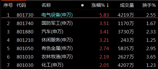 今日合计有80股涨停,较上个交易日的61股涨停数增加了19股。申万28个一级行业中,电气设备、军工领涨两市。