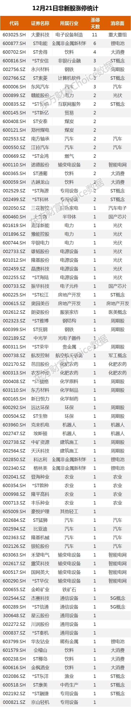 12月21日新股涨停统计