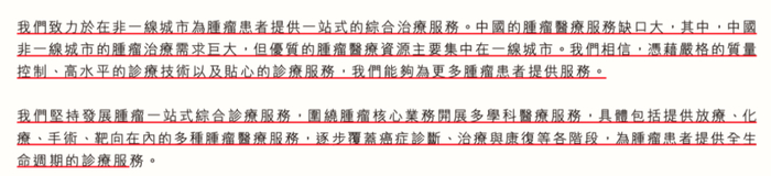 从公司的战略定位和医院布局区域来看,都不是一线城市或者省会城市,因此,海吉亚医疗承接的客户是北上广深或者省会城市强大医院所不能服务到的患者,因为这些三甲医院的资源是稀缺的。