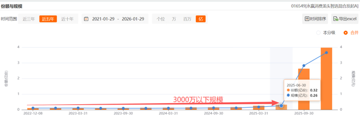 同样,曾濒临清盘的永赢消费龙头智选混合发起A(016549.OF)从1147万的规模直接咸鱼翻身,凭借31.4%的收益率,规模增至3.6亿。