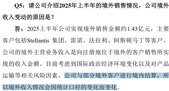 不过半年报却显示,2025年上半年境外收入锐减至1.43亿,下降了46.6%,这是境外市场也受到冲击了吗?