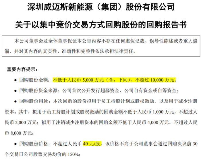 (威迈斯回购报告书)