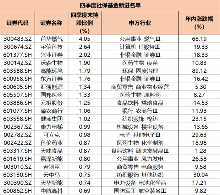 社保基金前瞻性布局于行业景气度回升的起点,并充分享受到股价上涨的果实,年内首华燃气已近70%。