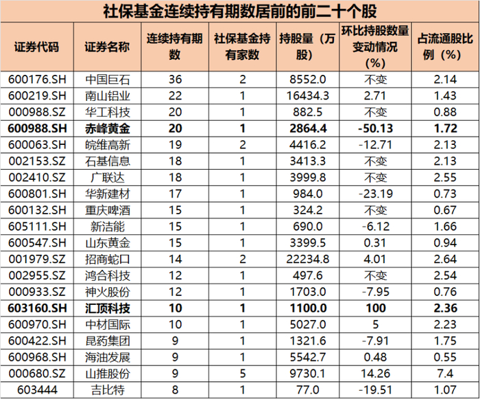 同样被社保基金青睐的还有南山铝业和赤峰黄金,持仓时间也均超过5年。这反映出社保基金对资源类资产配置的战略高度。在宏观环境不确定的年份,黄金的避险属性和铝业的工业刚需,仍是组合里的压舱石。