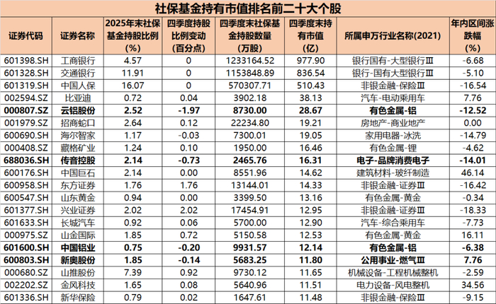 回顾2025年,在电解铝产能红线与新能源、光伏需求爆发的双重驱动下,铝价始终维持高位运行。然而,随着股价充分映射业绩预期并触及阶段性顶部时,社保基金果断选择逢高小幅减仓获利了结。