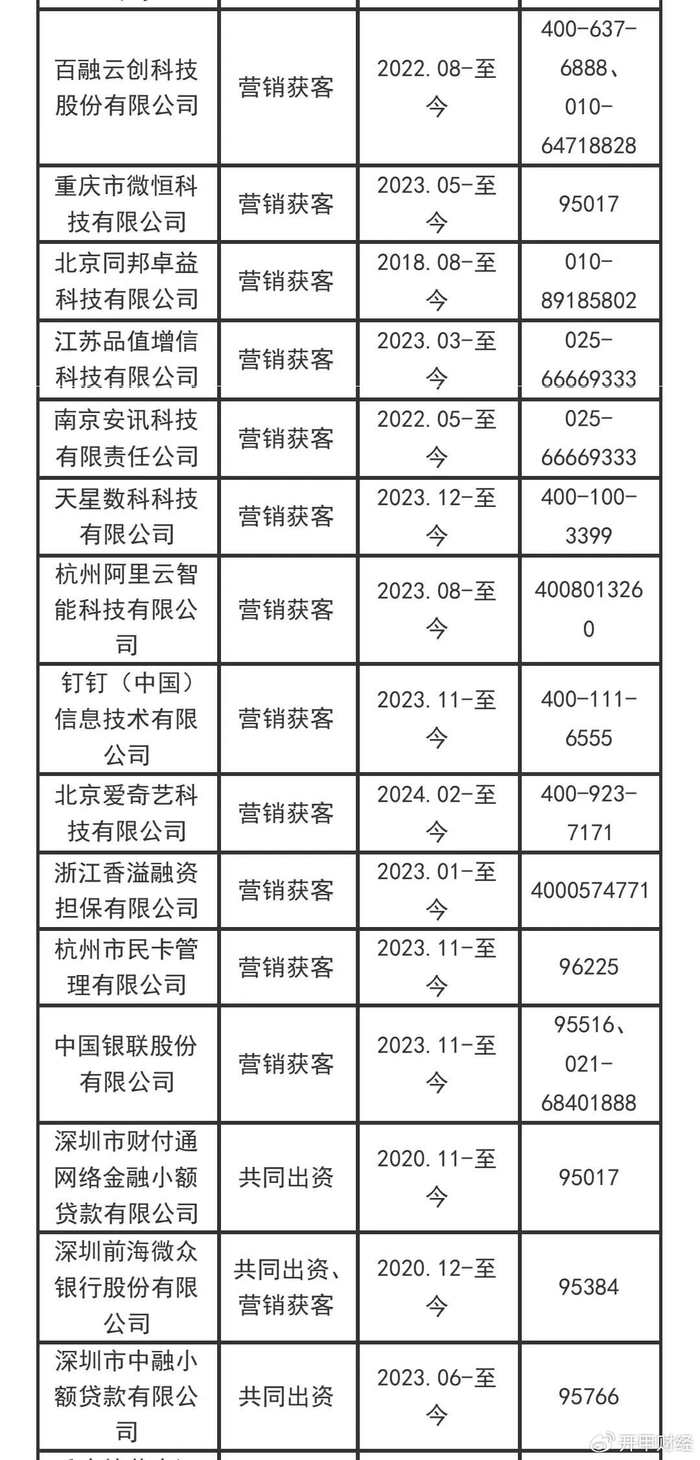 其中,共同出资合作机构9家,分别为:网商银行、众邦银行、蚂蚁消金、盛际小贷(京东旗下)、财付通小贷(腾讯旗下)、微众银行、中融小贷(字节跳动旗下)、度小满小贷、三快小贷(美团旗下)。