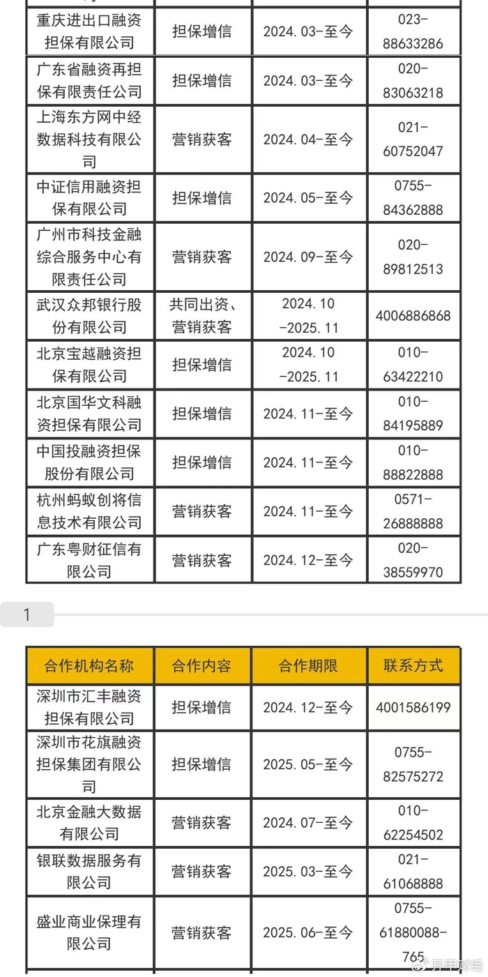 截至2025年11月26日,宁波银行担保增信类合作机构94家,催收服务类合作机构13家。