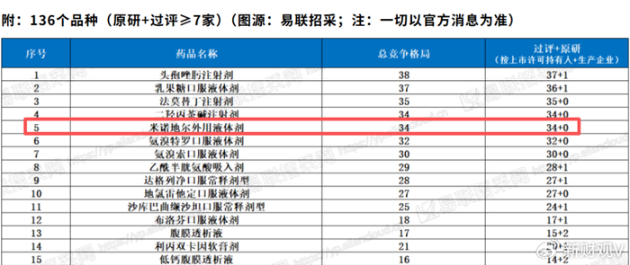 2025年,国家医保局在开展第十一批药品集采评估前,“米诺地尔外用液体剂”就排在未纳入国采且初步具备纳入国采条件的136个品种名单中。排名显示,“米诺地尔外用液体剂”的过评数量为34家,远远超过7家的集采要求,已符合集采“应采尽采”的原则。