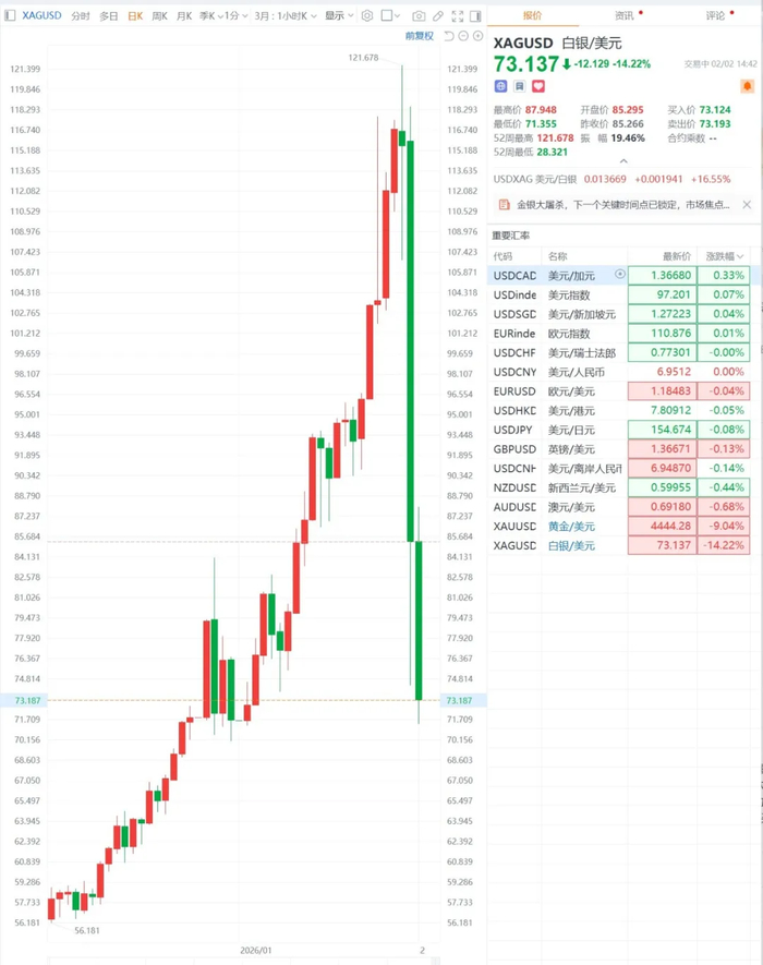 兄弟姐妹们,白银这个线,够吓人啊,三个交易日抹平一个月涨幅。