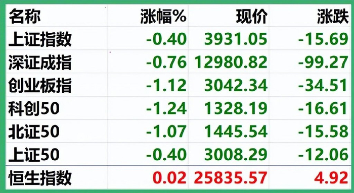 英伟达跌3.15%、微软跌1.60%、苹果跌0.86%、特斯拉跌2.21%、谷歌跌1.03%、甲骨文跌6.59%、AMD跌7.84%、台积电跌1.77%、费城半导体跌4.77%……