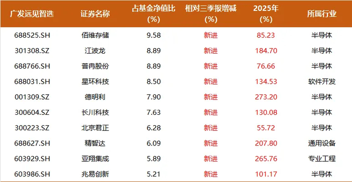 广发远见智选侧重存储产业链,重点配置存储及相关半导体设备,并且跑赢了同期存储指数涨势。