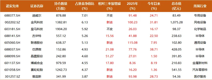 2025年下半年以来,诺安先锋的前十大重仓集中度显著提升,四季度达到51.78%;