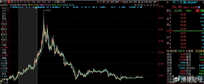 笔者还发现,该基金在2019年2季度买入14.55万股的华兰生物,2019年3季度持有9.82万股,2019年4季度持有2.23万股。2020年1季度已经没有了此前购买的股票份额。然而,在该基金持有期间,在2019年4月1日-2020年3月31日股票价格上涨了75%。