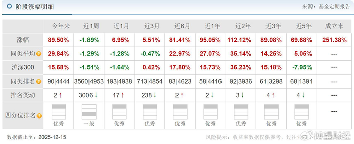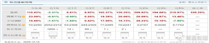 笔者还发现,景顺长城智能生活混合A业绩也不错,自2019年成立至2025年12月中旬,累计净值涨幅已达251.38%,同期业绩比较基准仅上涨20.59%,超额收益高达239个百分点。今年来收益率89.50%,近1年收益率95.05%,近2年来收益率112.12%,近3年来收益率89.08%,近5年来收益率69.68%。如此“现象级”表现并非偶然,而是多重因素叠加、形成合力的结果。