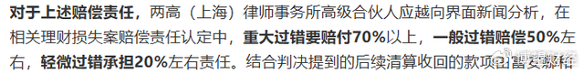 据《界面新闻》等报道,中信证券被认定承担50%的赔偿责任,这一比例按照法律专业人士的分析,对应于“一般过错”。值得注意的是,判决还规定后续清算收回的款项由富安娜和中信证券按50%:50%的比例平分,但支付给中信证券的部分以2928.63万元赔偿款为上限。