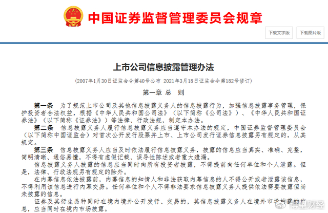 图片来源:中国证券监督管理委员会《上市公司信息披露管理办法》截图
