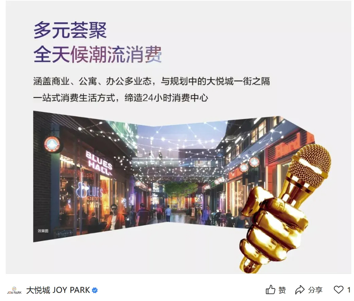 “日咖夜酒”直到2020年前后才开始流行开来,但悦街的规划已经领先了一步。不过,在社交平台上能够看到JOY PARK如今的景象,项目并不繁荣。不少本地消费者为项目如今的处境感到惋惜。
