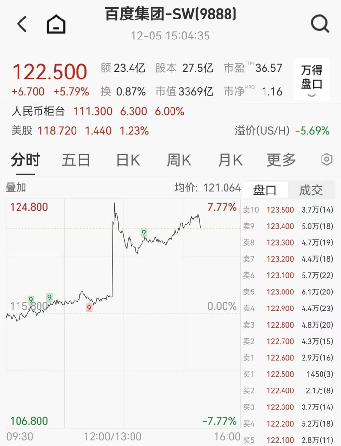 百度港股午后突然直线拉涨,1分钟内涨超5%,截至发稿涨近6%。消息面上,据财联社,有报道称,百度旗下半导体子公司昆仑芯计划在香港上市,昆仑芯近期融资2.83亿美元,估值达29.7亿美元。