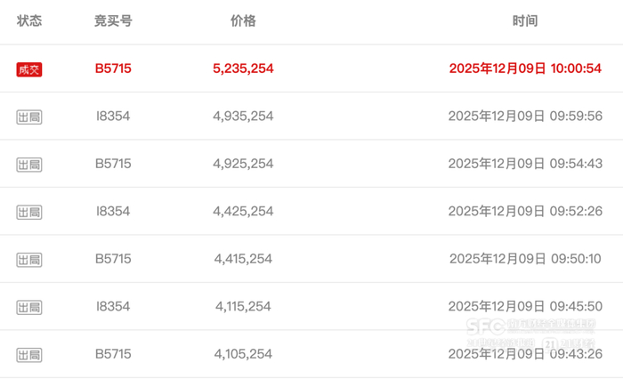 然而从12月8日至9日的竞拍记录来看,竞争并不激烈——三个标的中,仅有最小的一份标的有两方出价竞拍,共计出价10次,最终溢价31.7%,其他两个标的均只有创东方华科出价,以底价成交。