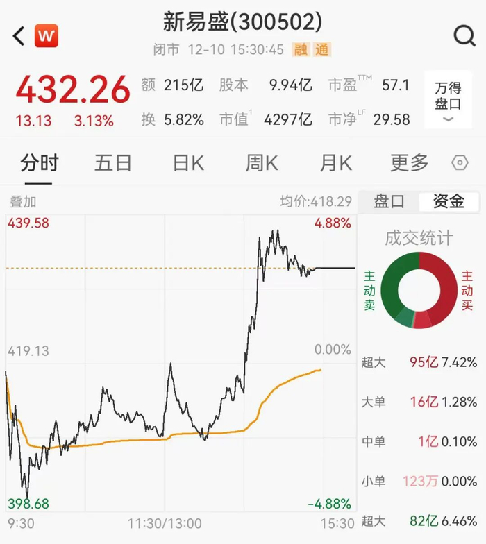 其他热门个股方面,摩尔线程午后涨幅一度达到27%,截至收盘回落至16.98%,报735元/股,最新市值3455亿元。这家12月5日刚刚登陆科创板的公司,目前已超过北方华创,在A股芯片概念股中市值排名第四,仅次于中芯国际、寒武纪和海光信息。从股价来看,摩尔线程也位列A股第三,仅次于寒武纪和贵州茅台。
