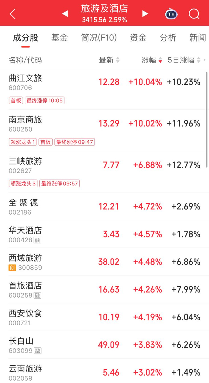 12月17日,旅游及酒店板块涨超2%,曲江文旅(600706.SH)、南京商旅(600250.SH)涨停,三峡旅游(002627.SZ)涨超5%跟涨。此外,近半年以来冰雪产业板块异动频频,截至12月16日收盘,首开股份(600376.SH)股价实现翻倍,凯撒旅业(000796.SZ)、雪人集团(002639.SZ)、大连圣亚(600593.SH)等多只概念股涨超50%。