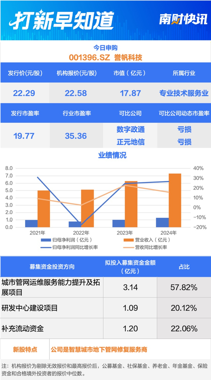 公司业绩方面,2022年至2024年,誉帆科技分别实现营业收入5.13亿元、6.3亿元、7.3亿元,分别实现净利润0.81亿元、1亿元、1.27亿元。公司预计2025年实现营收8.04亿元,同比增10.16%;实现净利润1.4亿元,同比增7.83%。整体而言,公司近年来业绩保持增长趋势,但增速明显放缓。