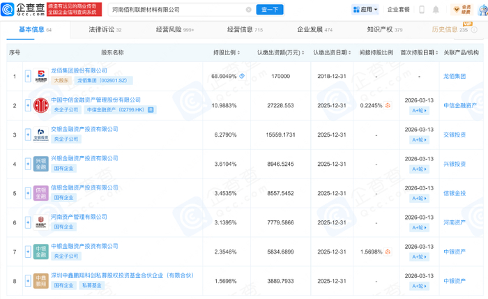 据佰利联新材料母公司龙佰集团(002601)公开公告及企查查工商数据显示,此次佰利联新材料通过增资扩股引入7家战略投资者,合计募资规模达20亿元,四大银行系AIC悉数入局且出资力度各有侧重。