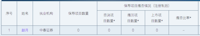 另一名保代赵月2023年获登记为保代,截至目前保荐项目为0,无首发、非公开发行等项目经验。