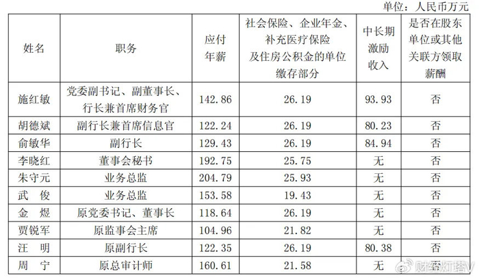 其他的高管也不错,上海银行的副行长兼首席信息官胡德斌以228.66万元紧随其后,副行长俞敏华和原副行长汪明分别以240.56万元和228.92万元的薪酬位列第三和第四。