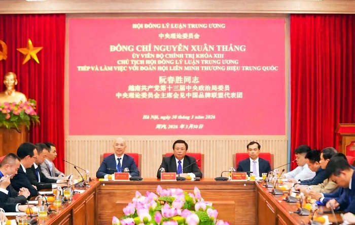 3月30日,越南共产党第十三届中央政治局委员、中央理论委员会主席阮春胜会见中国品牌联盟代表团。