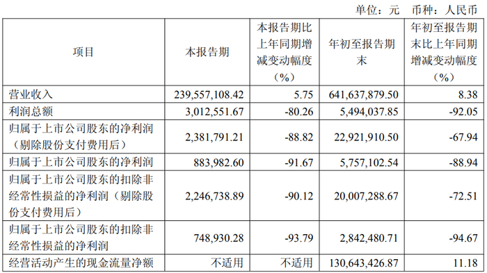 2025年前三季度,统联精密实现营业收入6.42亿元,同比增长8.38%;归属于上市公司股东的净利润575.71万元,同比下降88.94%;归属于上市公司股东的扣非净利润284.25万元,同比下降94.67%;经营活动产生的现金流量净额为1.31亿元,同比增长11.18%。