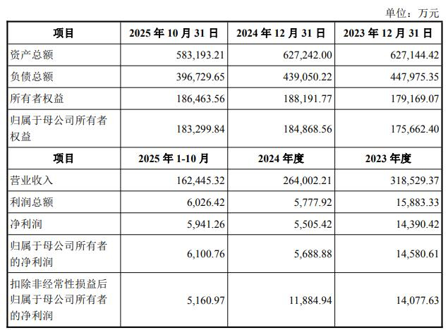 2023年、2024年、2025年1-10月,中控信息实现营业收入分别为318,529.37万元、264,002.21万元、162,445.32万元;净利润分别为14,390.42万元、5,505.42万元、5,941.26万元;归属于母公司所有者的净利润分别为14,580.61万元、5,688.88万元、6,100.76万元;扣除非经常性损益后归属于母公司所有者的净利润分别为14,077.63万元、11,884.94万元、5,160.97万元。