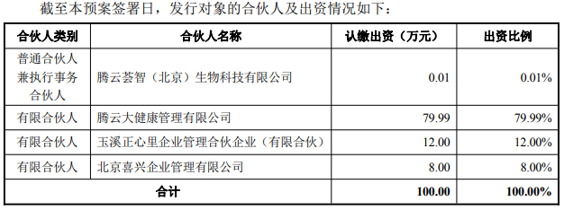 根据腾云新沃《合伙协议》,腾云生物为腾云新沃普通合伙人兼执行事务合伙人,腾云大健康、喜兴管理和玉溪正心里为有限合伙人。腾云生物设立投资决策委员会,作为腾云生物投资决策的最高决策机构,对项目投资及退出进行商议决策。投资决策委员会由五名委员组成,腾云生物拥有三名委员的委派权,喜兴管理拥有一名委员的委派权,玉溪正心里拥有一名委员的委派权。每名委员享有一票表决权,投资决策委员会就任何事项作出决策均应经过全部委员的半数同意,特别地,关于投资项目的退出事项,应经过全部委员的2/3以上同意。腾云生物拥有决策委员会半数以上委员委派权,腾云生物及其全资控股股东腾云大健康合计持有腾云新沃80%股权,可以控制腾云新沃的投资决策事项。