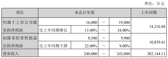 2025年度业绩预告显示,沃森生物预计去年营业收入为240,000万元至243,000万元,上年同期为282,144.13万元;归属于上市公司股东的净利润16,000万元至19,000万元,比上年同期增长13.00%至34.00%;扣除非经常性损益后的净利润8,500万元至9,900万元,比上年同期下降9.00%至22.00%。